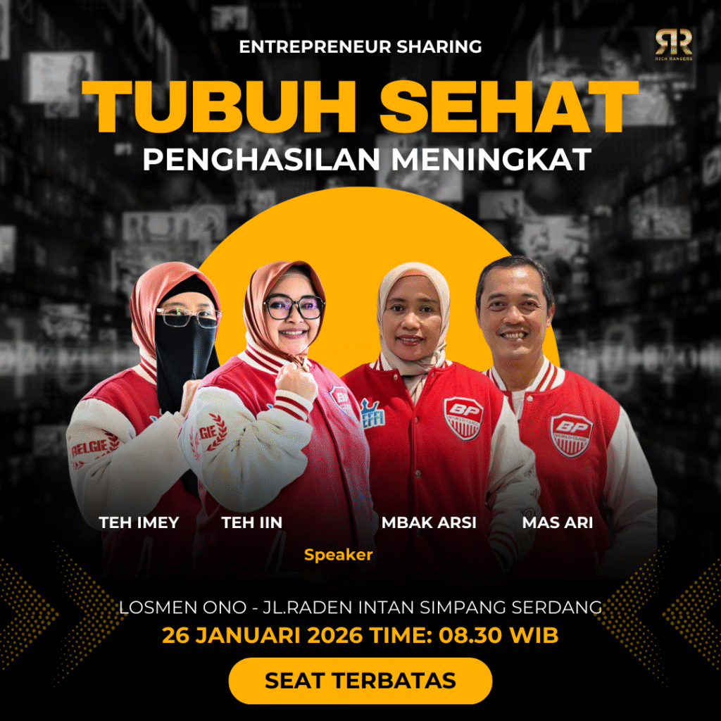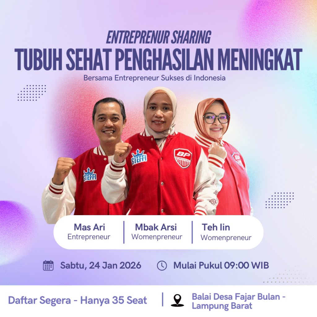 Seminar edukatif yang membahas hubungan antara kesehatan tubuh, mindset, dan peluang bisnis yang dapat dijalankan secara praktis